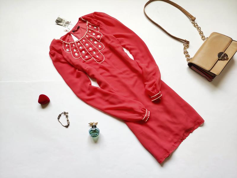 Платье Atmosphere. Размер указан 16. ПОГ -48, тянется до 50, ПОТ - 44-44,5, ПОБ - 49-50. Длина 89. Рукава прозрачные. 100% полиэстер