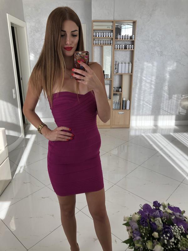 Бандажное платье без бретелей , фиолетового цвета ,носила несколько раз .Одето на рост 175 см ,дополнительные фото отправлю по запросу .