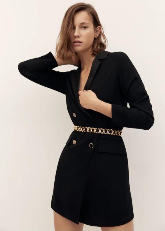 Сукня-жакет від Mango, нова з біркою З комірцем під атлас та красивими гудзиками ОГ – 41 (глибокий виріз) ОТ – 40 см ОБ – 46 см (макс бедра 90-92 см) Довжина – 85 см Не тягнеться