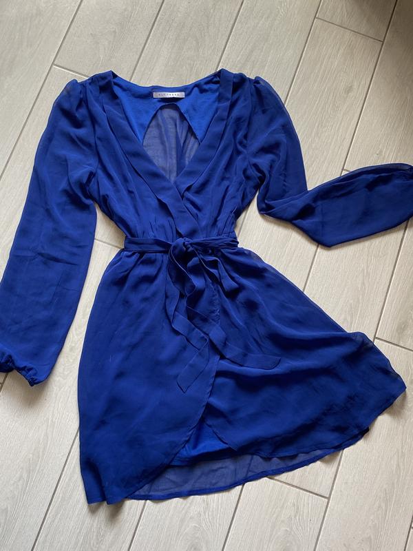 Яркое синее платье Ткань вроде похода на шифон Сзади на внутренней подкладке вырезана капелька на спине Пояс для красоты,на талии есть резинка Идёт на размер хс-с