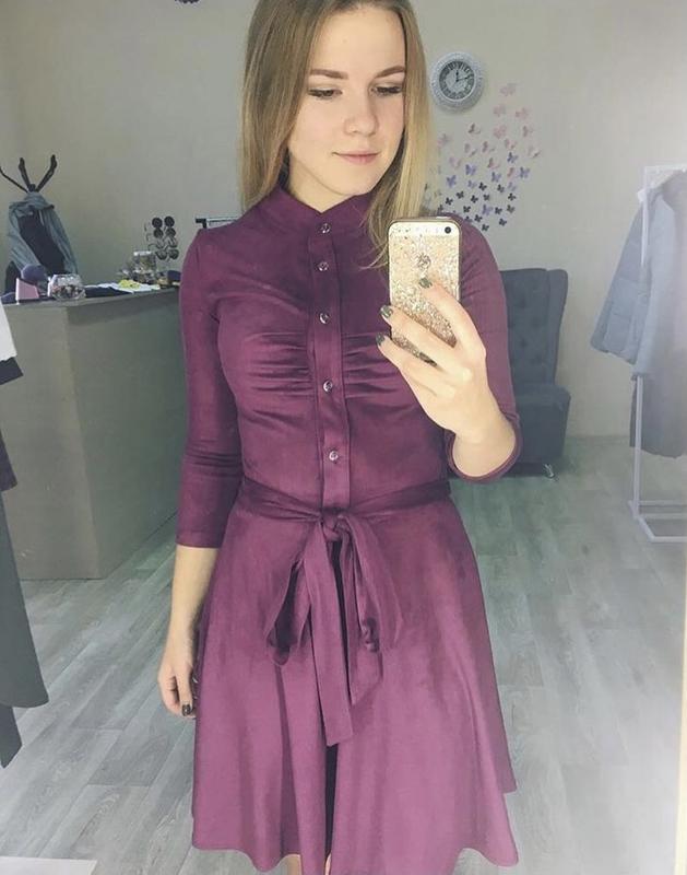 Малиновое платье с поясом и пуговицами, размер - s, замшевое