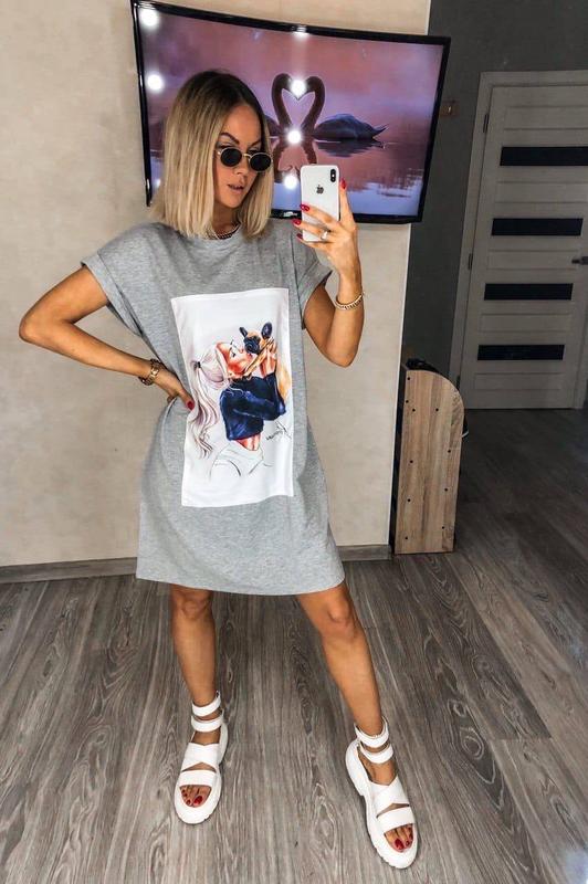 Платье Туника Мод 011АП Размеры 42-46,48-52 Ткань - Качественная вискоза Турция + Сублимация пришивка Цвет: белый ,Чёрный,Серый Качество LUX!!! Рост модели 170! Длинна :42-46 87см)48-52 95см)