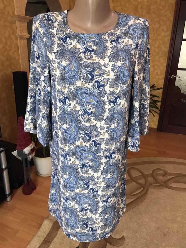 летнее платье,100%вискоза ,красивый рукав немного росклешонный, по груди 50, длина 90, по плечам 36, рукав 43, по бедрам 51