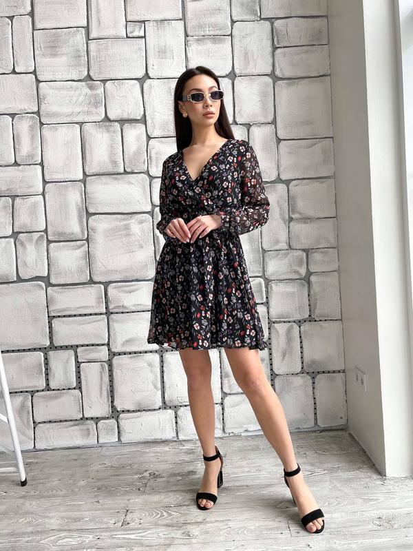 Платье с цветочным принтом❣️ Мод:574 Размер: s,m,l,xl Ткань: шифон на подкладке Длина 90см Цена 550 грн