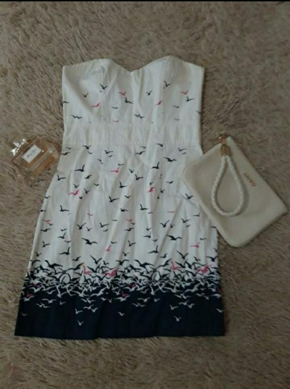 Платье без шлеек. Принт -ласточки .Отлично сядет на xs -s.Торг уместен