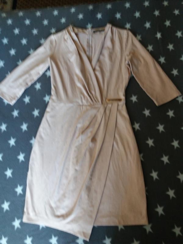 Пудровое платье на запах с ассиметрией внизу не оставит вас без внимания окружающих,где бы вы не оказались.