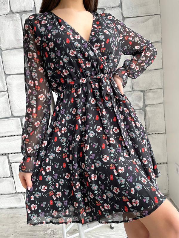 Платье с цветочным принтом❣️ Мод:574 Размер: s,m,l,xl Ткань: шифон на подкладке Длина 90см