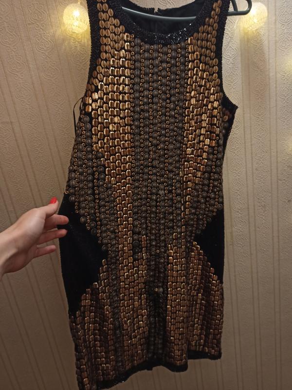 Очень красивое, нарядное платье в паетках. Может где-то не хватает паеток, не критично .