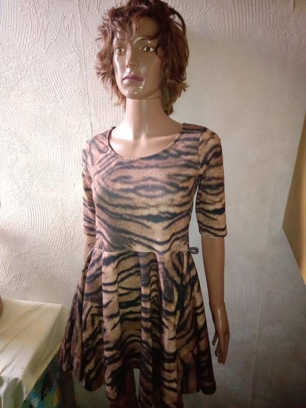 Яркое и стильное платье с тигровым принтом. Рукав 3/4 низ слегка в складку, выглядит супер. Если Вы любите ловить на себе восхищенные взгляды, не боитесь быть яркими и заметными, то это однозначно Ваша вещь. Ткань немного тянется, есть место для пояска, бирки с размером, составом и т.д. отсутствуют около 46-48 раз. ПІВОБХВАТ ГРУДЕЙ 41 см. ПІВОБХВАТ ТАЛЇЇ 36 см РУКАВ 32 см ДОВЖИНА 80 см. ВіДАр - яскравий шопінг доступний кожному 🛍️! Рада бачити Вас у себе✋ - МІНІМАЛЬНА СУМА ЗАМОВЛЕННЯ 80 ГРИВЕНЬ! - Відправка протягом 1-5 днів 🚀 - Перед оформленням замовлення уточнюйте будь ласка наявність 😺 - Для постійних клієнтів є приємні бонуси 😻 ❗Перед покупкою уважно прочитайте опис товару та магазину, якщо залишилися питання пишіть, не соромтеся😘 Дякую за Ваш вибір, все буде Україна 🙏🇺🇦