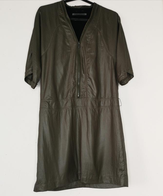 Платье цвета хаки ikks, размер 38, ткань с эмитацией кожи, с подкладом, лёгкое.