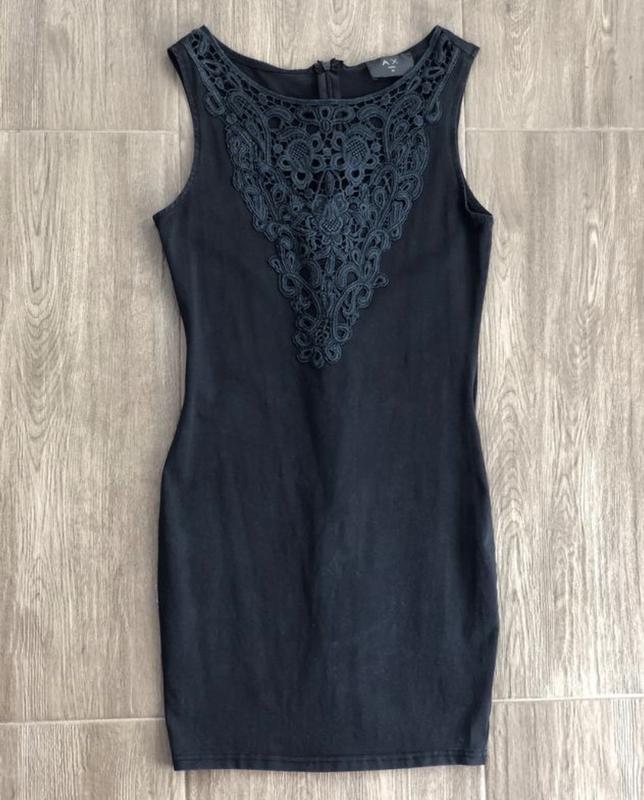 Интересное чёрное платье с кружевом Размер XS-S, ткань ещё тянется