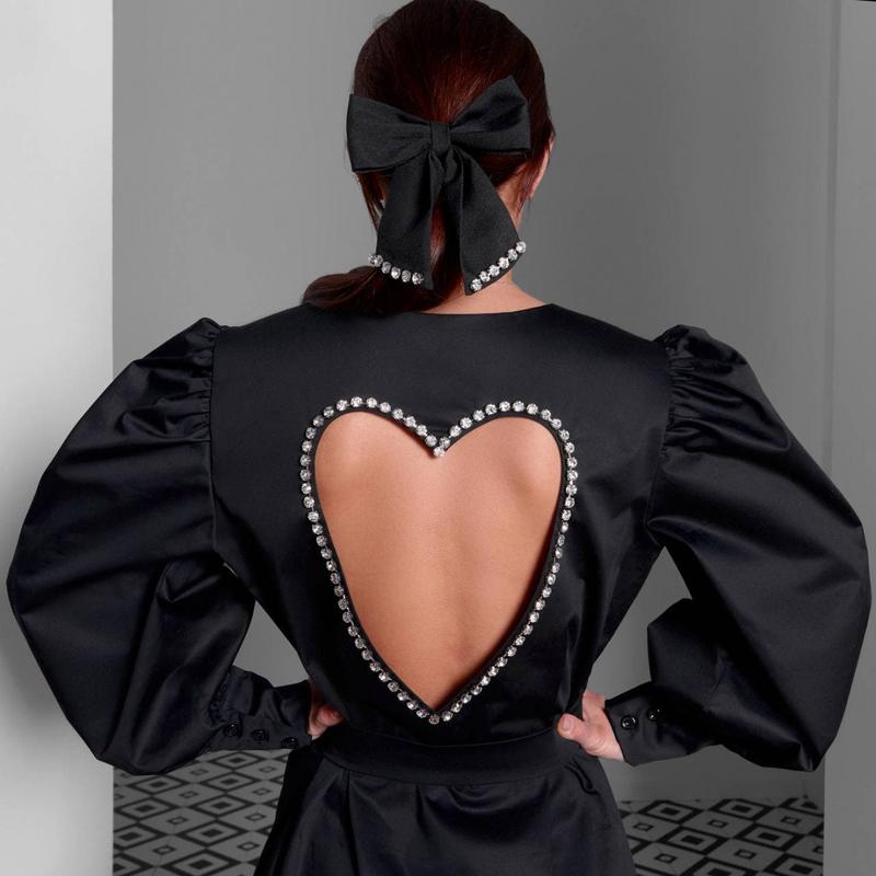 Ефектне жіноче плаття. Стильна інтерпретація маленького чорного плаття на всі випадки життя. Сукня оптимальної довжини міні, з пишними, об'ємними рукавами на манжетах. Сукня прямого крою, можна носити вільно або підкреслювати талію поясом, який йде в комплекті. Акцентной деталлю стане виріз на спині у вигляді серця з оздобленням стразами. Сукня виконана із щільної тканини 100% коттон. В комплекті до сукні йде бант для волосся. В наявності жіноче плаття в лаконічному чорному кольорі. Виробник: ТМ Elena Pokalitsina Модель:11737