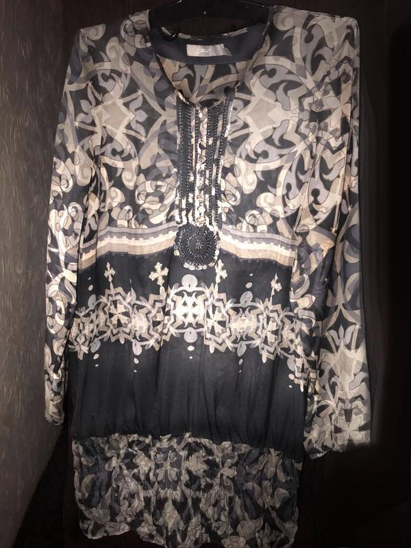 Короткое шелковое платье ,c красивым принтом,без подкладки. Низ платья на широкой резинке. Платье на каждый день,хотя выглядит нарядным,легкое и практичное. Замеры по запросу. Обязательно посмотрите другие мои лоты-возможно Вы найдёте то,что давно ищете.. И помните,что пока вы оставляете себе в "избранное" кто то покупает и Вы рискуете остаться без понравившейся вещи. Выгодно покупать несколько лотов-можно сэкономить на пересылке каждого. Доставка: Предоплата на счет, "Приватбанк"(по требованию) Доставку Вы можете оплатить самостоятельно при получении посылки на почте. После оплаты укажите на какой адрес выслать Вашу покупку, на чьё имя, и номер телефона на который нужно отправить уведомление о доставке на почту Вашего заказа. Отправлю посылку сразу же после поступления денег на счёт. Наложенным платежом не отправляю.