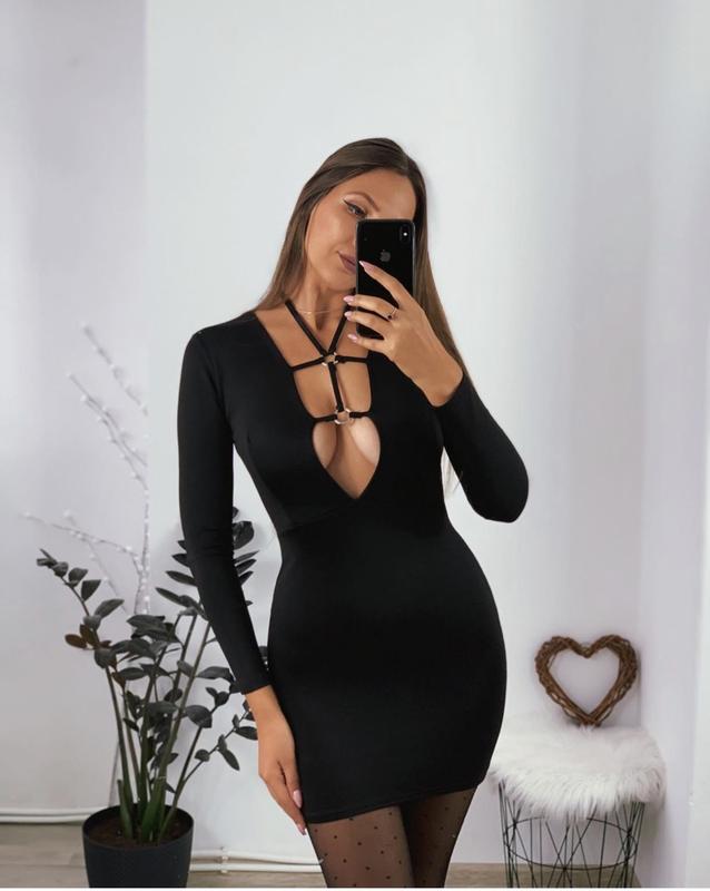 Шикарное секси платье с колечками Очень приятная ткань, плотная не светит Размер: 8/S Длина: 80 см Длина рукавов: 59 см Полуобхват груди: 41-45 см Полуобхват талии: 32-36 см Полуохват бёдер: 44-48см