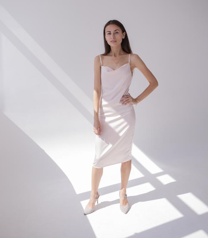 Платье комбинация из шелка. Цвет пудра. Elly Room (собственное производство)