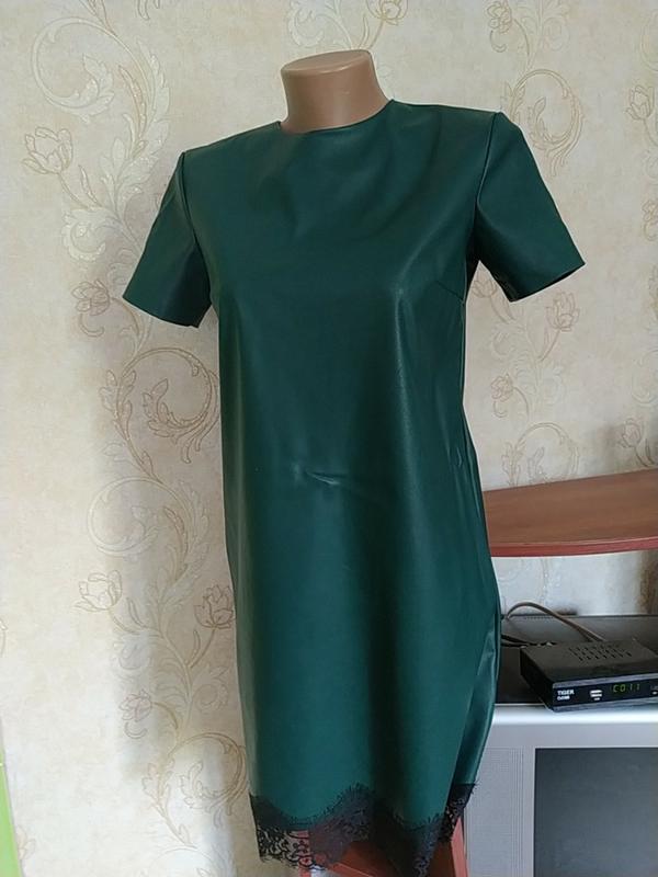 плаття з екошкіри, вільного крою, стан нового, одягалася у 2 рази. Красивого, благородного зеленого кольору.