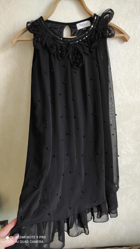 Красивое чёрное платье декорировано черными жемчуженами.На подкладке,не просвещаетсяБез изьянов. Размер S. ПОГ - 46,длинна 81