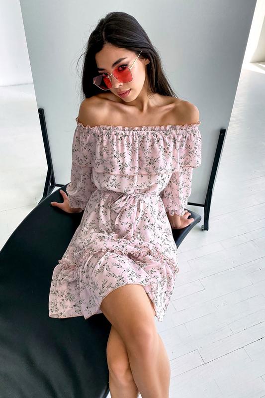 Шифоновое💖платье оверсайз с открытыми плечами розовое 3 цвета