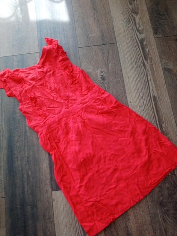 очень красивое платье кораллового цвета, длина 82, пог 44, пот 36, поб 50, сбоку молния