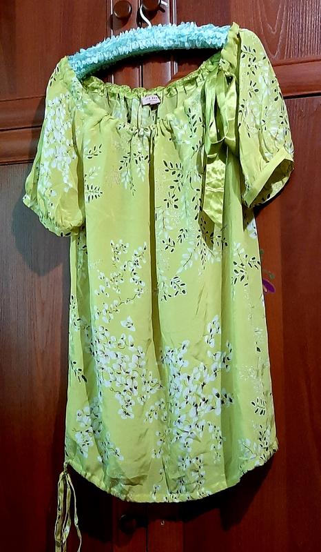 по груди 50 см. длинна 80 см воздушное.. стягивается по горловине... низ стягивается....