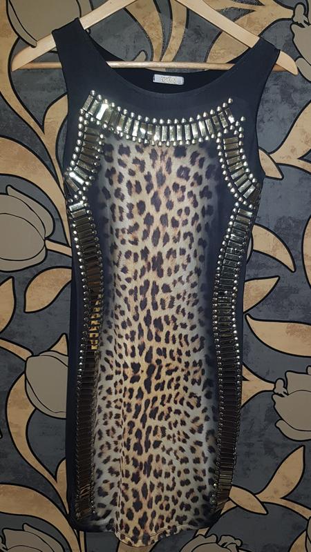 Очень красивое нарядное платье в принт, для любого мероприятия-свадьба ,выпускной,корпоратив и т.д. Аксессуары все на месте,сверкают.Сзади идёт без принта,просто чёрное. Размер М-Л,42-46.Ткань тянется,состояние нового одето было один раз.