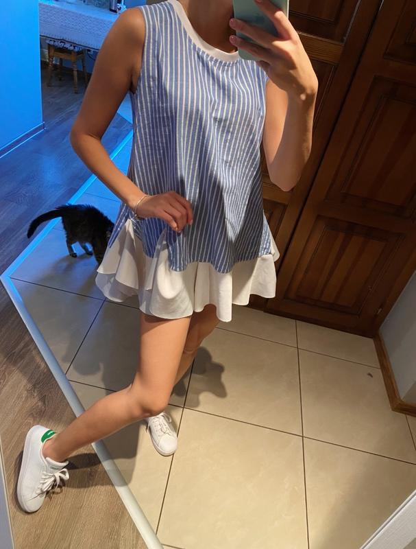 летнее платье туника в полоску внизу с воланом размер xs-s На невысокую девушку На фото надето на рост 165 Длина платья 73 см