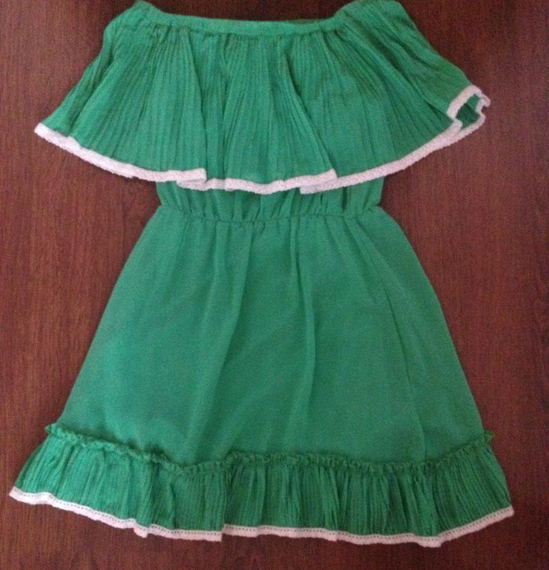 Плаття на плечі з рюшами. Довжина 77 см, підмишки 43, талія 31.