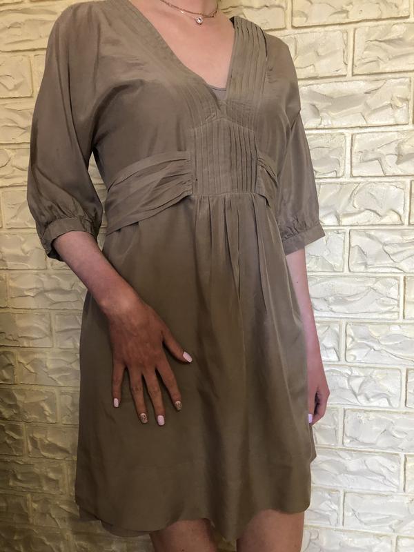 Платтячко в ідеальному стані, в гарному якості 65% бавовна, 35% шовк! Тканина м'яка, ніжна, легка! Довжина 87. Груди 98. Талія - кокетка 94 - фіксується поясом.