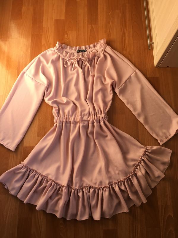 Нереально нежное воздушное легкое платье шелк пудрового цвета с рюшами воланом