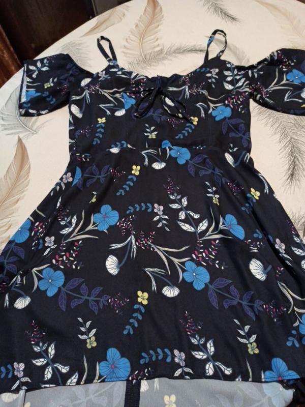Сукня на бретельках зі спущеним рукавом Тканина приємна,не просвічує. ПОГ 47см Талія 39див Довжина спереду вкорочена 42см,спинка 70см На спинці блискавка
