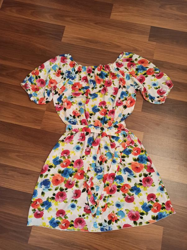 Очень лёгкое и красивое летнее платье, пояс и рукава на резинке ПОГ 52 ПОТ тянется до 46 длина изделия 79 длина юбки 46