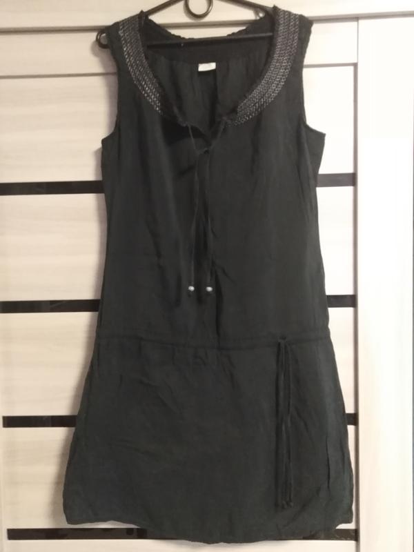 Платье чёрного цвета, на кулиске ниже талии, состав 82%вискоза, 18%нейлон, подкладка 100%коттон. Длина 94, длина до кулиски 56, пог 46, пот 44 Отправлю укр почтой либо Новой почтой. После оплаты на карту Приват банка. Наложенным платежом не отправляю. Интересующие вопросы спрашивайте до покупки. Приятных покупок!!!!