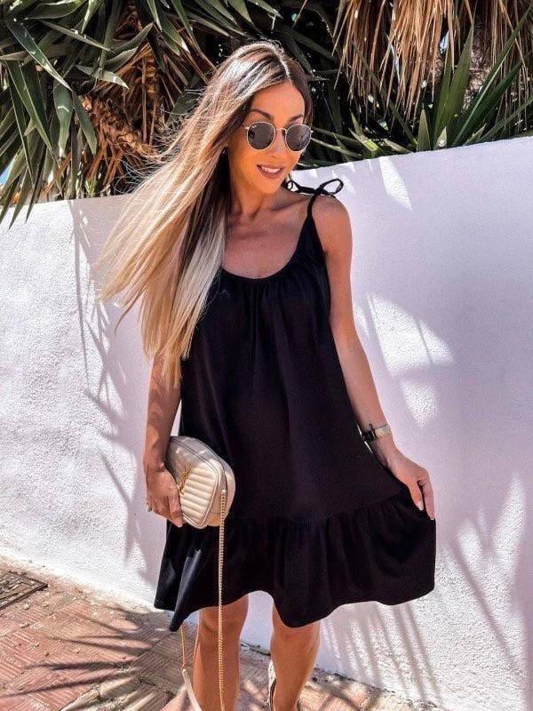 Женское летнее платье сарафан. Красивый легкий сарафан свободного кроя с рюшами на бретельках Мод: 87КО Размер: 42-46 (единый) Ткань: турецкая вискоза Цвета: черный/белый/полоса