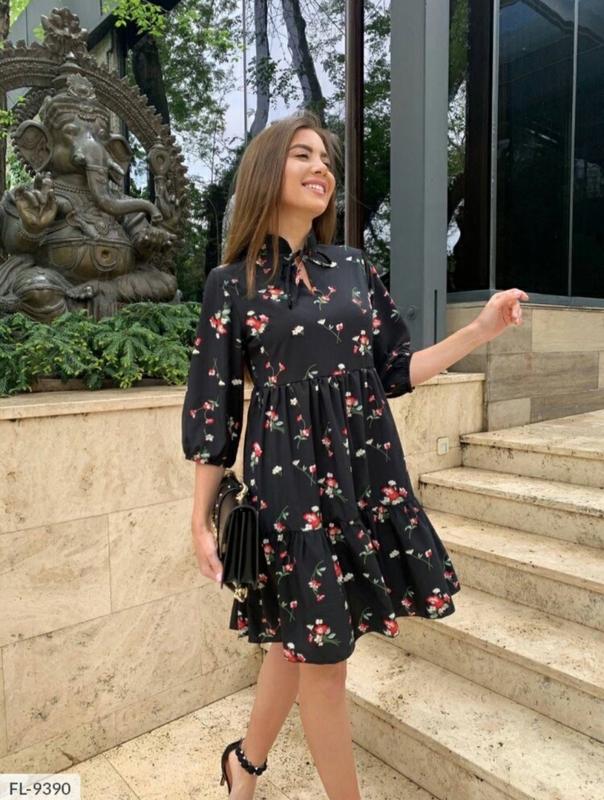 Стильное,легкое платье. Размер:42-44,44-46. Ткань:шелковистый креп-софт. Цвет:черный в цветочек. 25.05