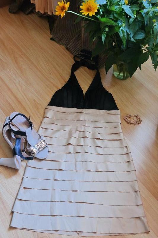 Вечернее платье в хорошем состоянии с открытой спиной.Размер L, Под грудью -74 см,Длинна от груди - 59 см, Чашка груди - 18 см, Талия- 84. 60% COTTON, 35% POLYESTER, 5% SPANDEX