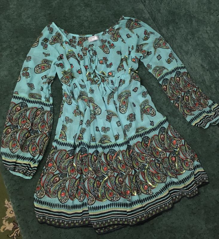 Платье, легкое, приятное к телу, ткань чуть просвещается. Привезено из Индии. Цвет передался точный на последнем фото, бирюза. Длина 76 см, рукав 62 см, ПО под грудью 50 см, талия завышена.