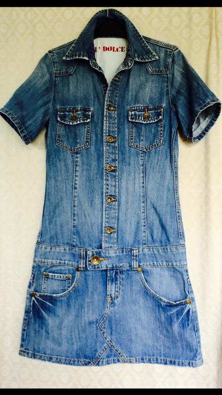 Джинсовое мини платье фирмы -Il Dolce. Очень стильное! Длина-88 Пог-45 Поб-45 Плечи-37 Длина рукава-23
