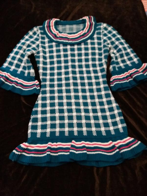 нове в'язане плаття.колір морська хвиля,рюші.длина80см, плечи42см, 84-80-90.
