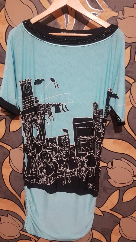 Интересное лёгенькое платьице.Размер С-М 42-46.Пошив свободный,к низу чуть зауженные.Ткань легенькая и хорошо тянется.На лето то что нужно. Состояние отличное.Замеры по запросу.