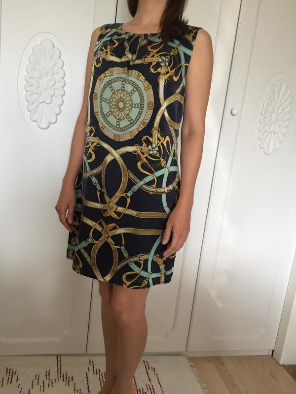 Платье полуприталенное на подкладке, длина по спинке 85 см, в груди 50 .