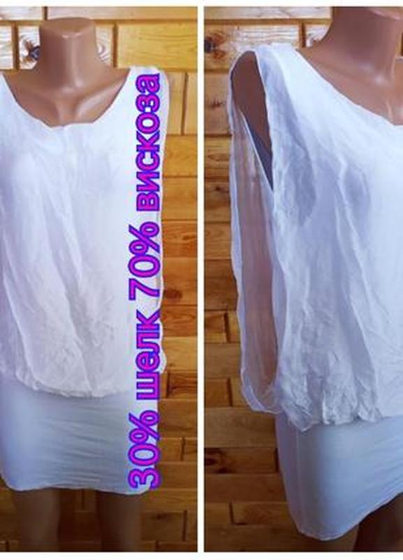 30% Шелк 70% вискоза . Интересное платье туника. Новое без бирки Снаружи легкая ткань шелк с вискозой Внутри майка вискоза трикотаж тянется Юбка двойной трикотаж тянется Размер за счёт фасона и ткани размер от XS до М