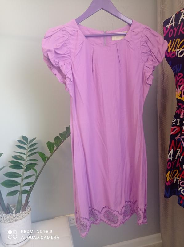 Дуже ніжне плаття з об'ємним рукавами, низ набивна аплікація , ззаду на замку Розмір 10(36) s