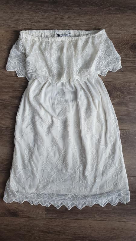 ажурне плаття молочного кольору без бретелей. на спинці виріз стан нового довжина 70 см