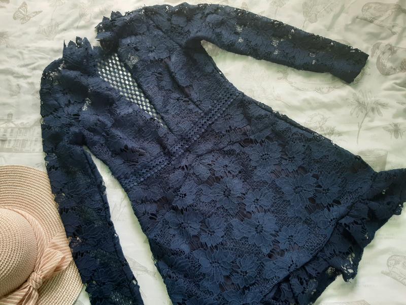 Дуже симпатичне плаття в якому ви будете зіркою на будь якому святі!Виконане із дорого гіпюрю і дуже гарно підуреслює спину.Колір благородний сино- темний камера передала світлішим.На підкладці просвічуються тільки руеави і вставка на грудях.