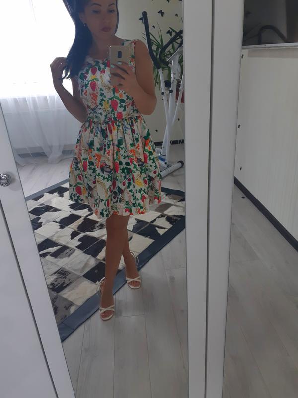 Очень красивое платье,трендовый принт,покупала за 1500 в бутике,плотная ткань,есть подкладка,подъюпник ,круто смотрится и сидит,сзади змейка на всю спинку.На любом мероприятии с каблуком и просто в повседневной жизни с кроссами будете выглядеть сногсшибательно😉👍