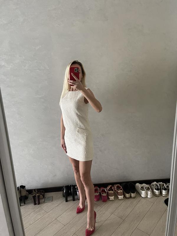 Новое элегантное мини платье-мини в футляр в стиле Шанель. Выполнено из плотной жаккардовой ткани. Подойдет на все случаи жизни и любой сезон Размер Xs/S На стегна до 94 см. Груди 32А-В