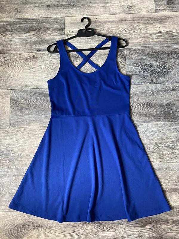 Платье синим цветом, без подкладки, размер указан М, состав полиэстер вискоза. Новое. Сток. Без бумажной бирки. Без нюансов. Замеры: длина 90, пог 44, пот 40, бёдра свободные, от линии талии к плечу 40.