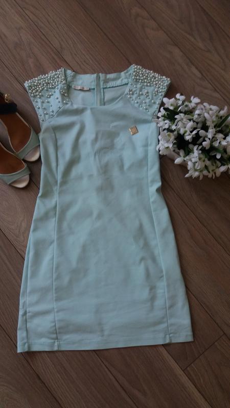 Гарне бірюзове плаття з перлинами,є незначні дефекти,які помітні лише мені🙄...