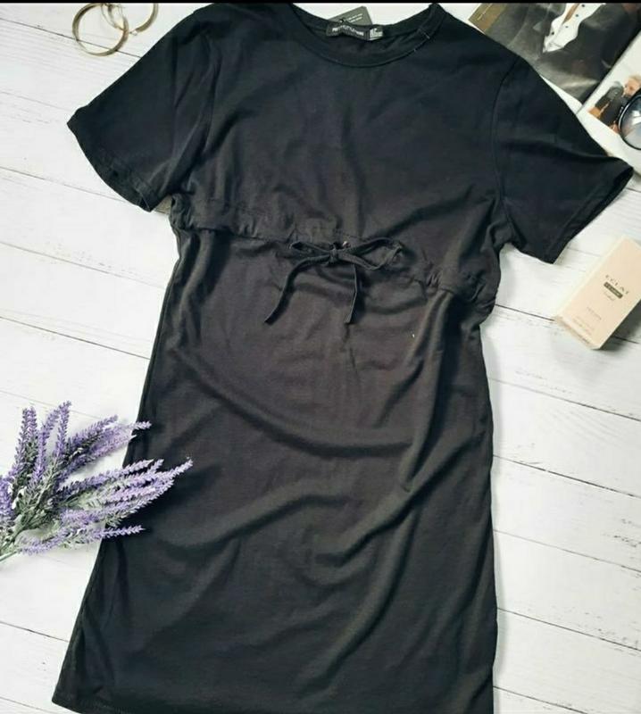 Чёрная платье-футболка. Размер 10. Полуобхват груди - 44 см. Полуобхват талии - 42 см. Полуобхват бедер - 46 см. Длина - 85 см.