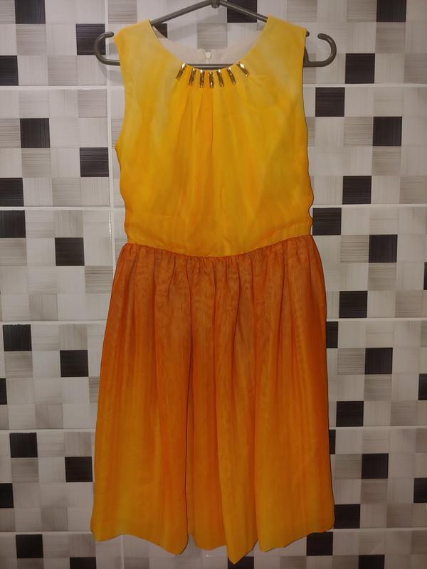 Хочете виглядати яскраво і по-літньому? Тоді це плаття те,що Вам потрібно. Шикарний перехід кольору, шифон на підкладці, відрізна талія, мінімальний декор- те,що треба. Довжина 87см ОГ 40см ОТ 33см ОБ вільний.